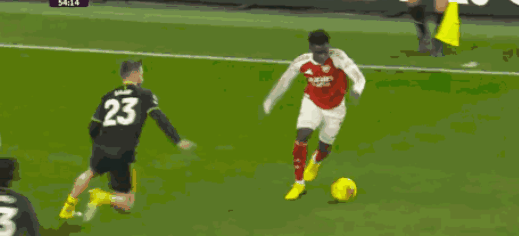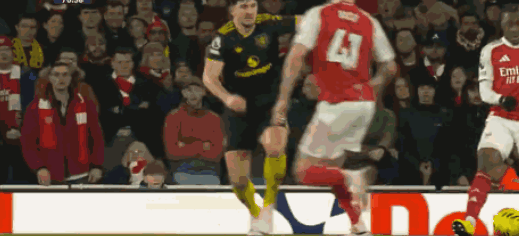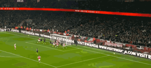 第65分钟,萨卡右路传中,赖斯不停球怒射,皮球高出横梁,直接飞出了底线。
