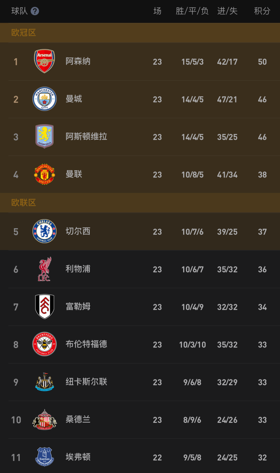 附:英超本轮完全赛果