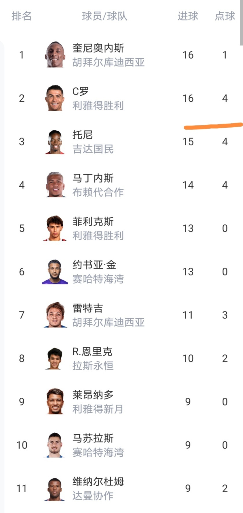 射手榜C罗无缘再次登顶,可惜了。