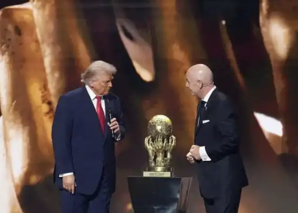 近期,国际足联主席因凡蒂诺宣布他将会和美国总统特朗普一起向冠军球队发放冠军奖杯。2025年夏天的世俱杯上,特朗普在颁奖仪式上曾因赖着不走而引发外界的广泛批评。