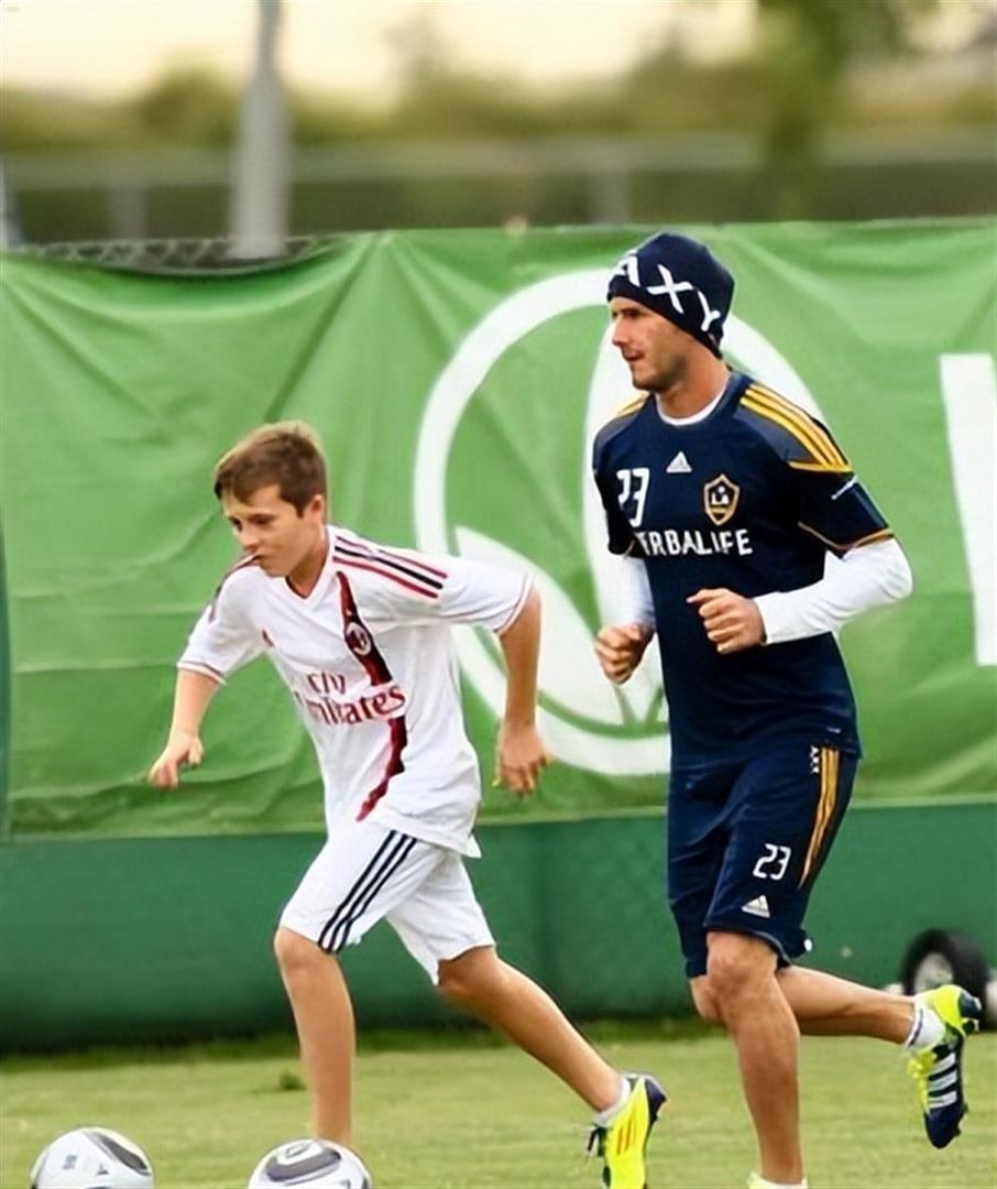 贝克汉姆在家里给他修了专业球场,亲自当陪练,送他进顶级的阿森纳青训营。