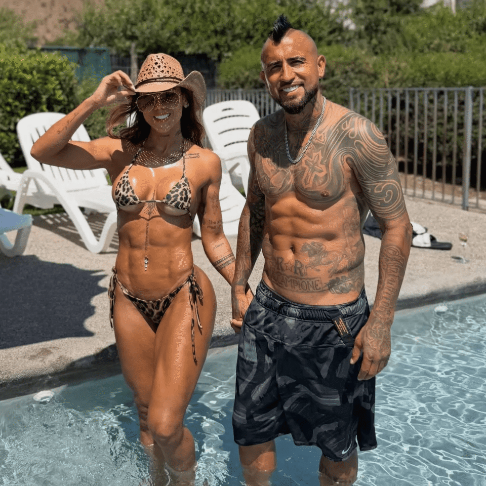 报道称,比达尔的女友名叫Sonia Isaza,现年37岁,是哥伦比亚健身网红,在社交媒体上拥有超360万粉丝。此次她身着超性感比基尼,与38岁的球星男友比达尔一起,在男友的家乡智利畅游泳池。