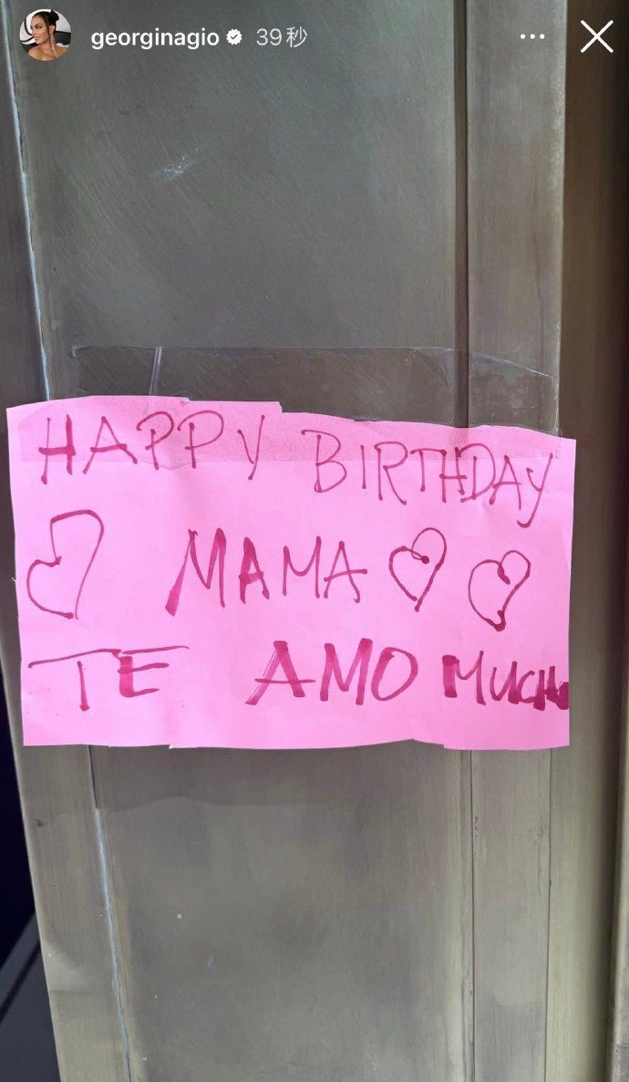 最有爱的是,孩子们也给妈妈送上了生日祝福,乔治娜晒出了孩子写给自己的便签:“生日快乐,妈妈,无限爱你哟!”