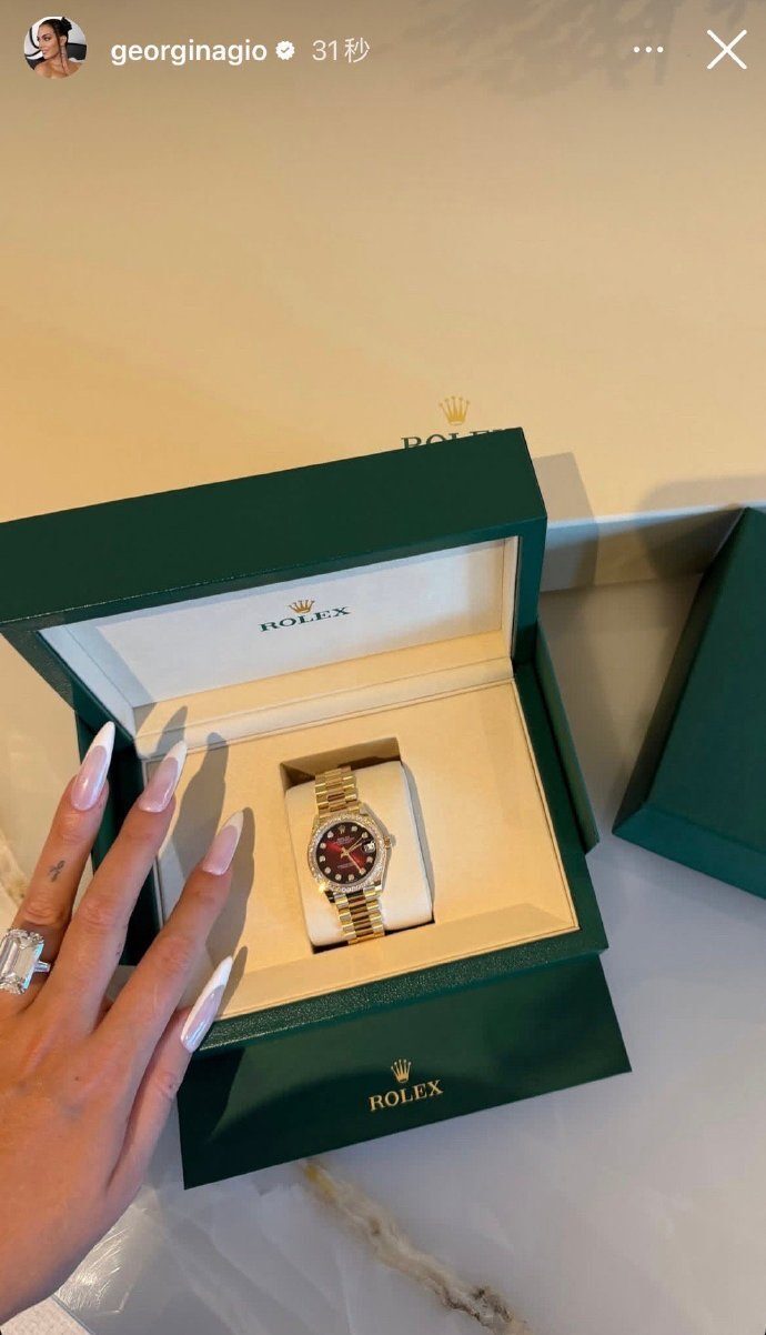 狗粮!C罗发推为漂亮女友乔治娜庆生,送她一枚劳力士金表价值百万
