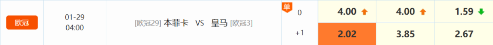 今天前瞻欧冠比赛,本菲卡VS皇马。