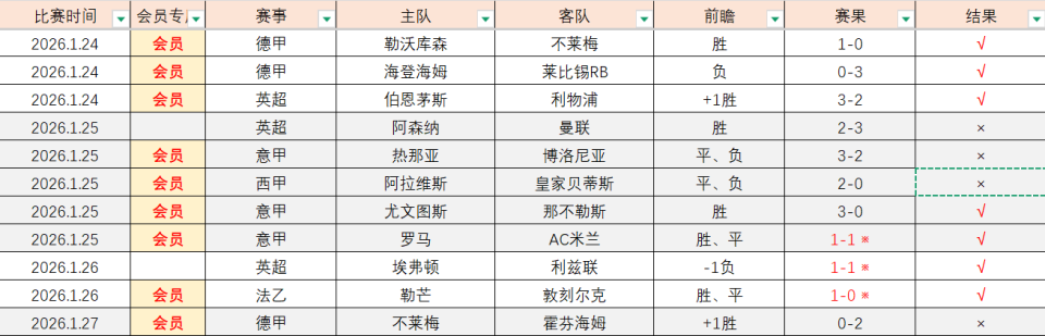 昨天只写了一场【会员专区】,霍村答错,思路我还是霍村升指顶高位不好,但他们还是拿下比赛,今年霍村或许真要高看一眼。周一的2场比赛全部答对,利兹联不败以及勒芒不败,而且两场比分也覆盖到了。今天欧冠收官轮【会员专区】写3场,各位参考。