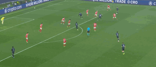 第47分钟,姆巴佩传中,维尼修斯的头球偏出。