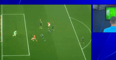 伤停补时阶段,楚阿梅尼角球防守时拉拽奥塔门迪,后者应声倒地,裁判判罚点球。