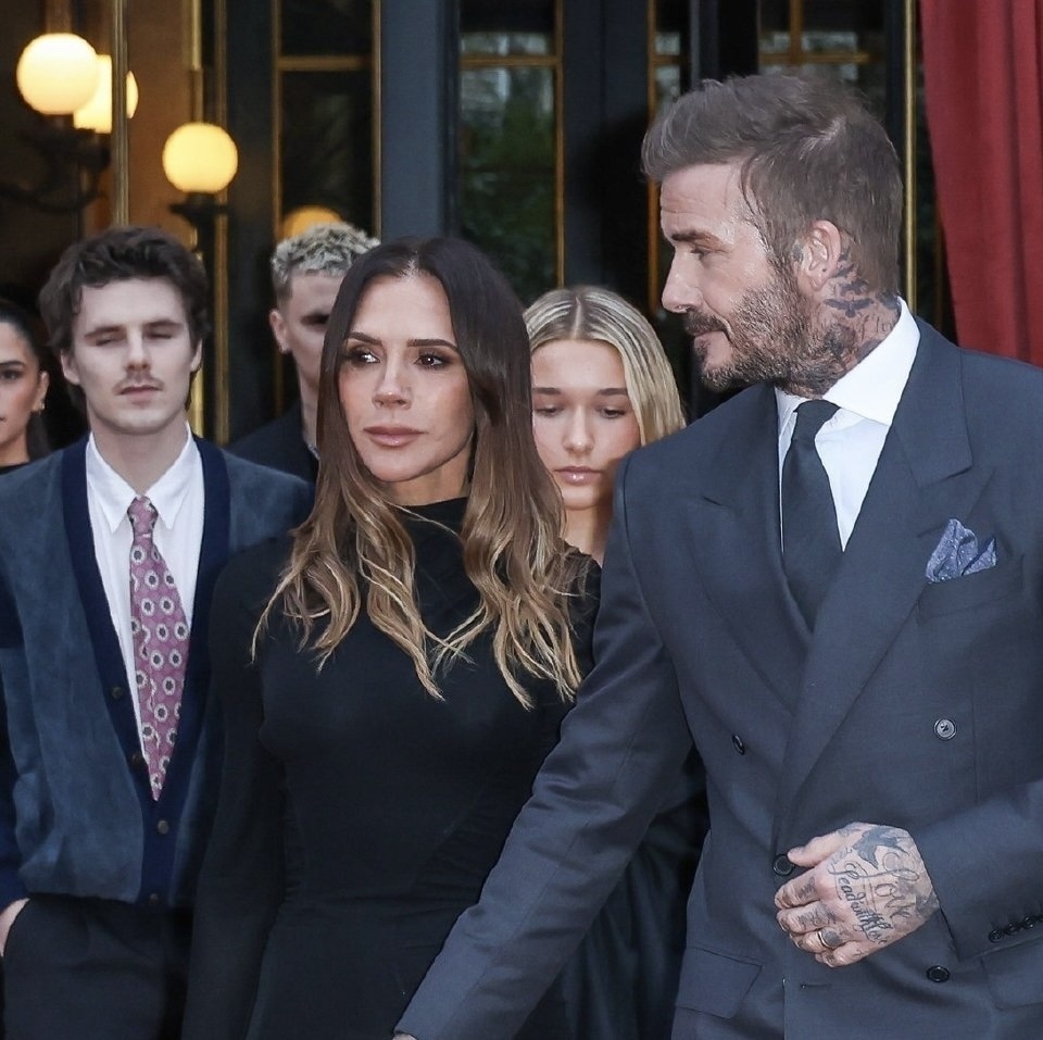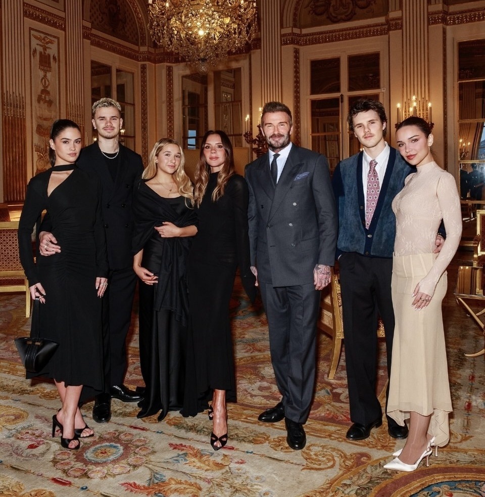 一周之后,贝克汉姆一家集体亮相巴黎,包括小贝夫妇,次子罗密欧、三儿子克鲁兹,14岁的小女儿哈珀。此行的目的,则是维多利亚获颁法国政府授予的“艺术与文学骑士勋章”,以表彰她在时尚领域的贡献。