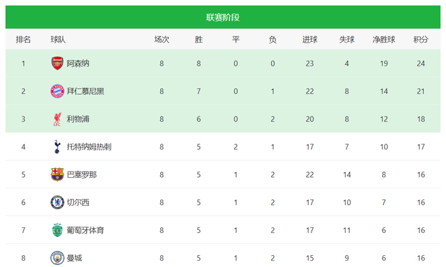 巴黎和纽卡的这场1-1,直接影响3队命运。巴黎和纽卡双双无缘直通,曼城则借机反超,幸运拿到直通席位。8支直通16强的球队全部出炉,阿森纳、拜仁、利物浦、热刺、巴萨、切尔西、葡萄牙体育、曼城。英超5队霸榜,这就是英超盛世。