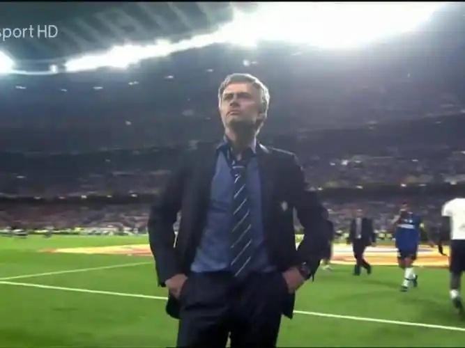 2010年欧冠决赛夜,当终场哨响,老男孩集体圆梦,看台上的国米球迷一边哭泣,一边用手机拍摄下终生难忘的场景,而球场内的穆里尼奥,叉腰环视,神情桀骜如国王。