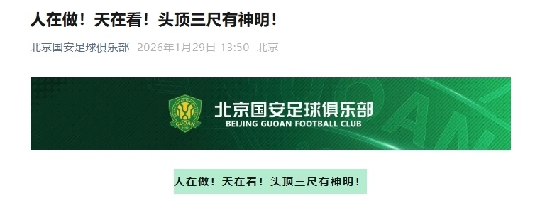 而在足协开出重磅罚单后,北京国安官方第一时间回应耐人寻味。国安官微愤怒写道:“人在做,天在看,头顶三尺有神明!”