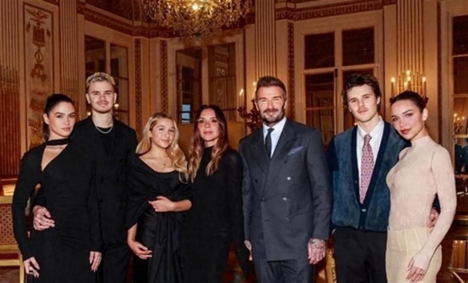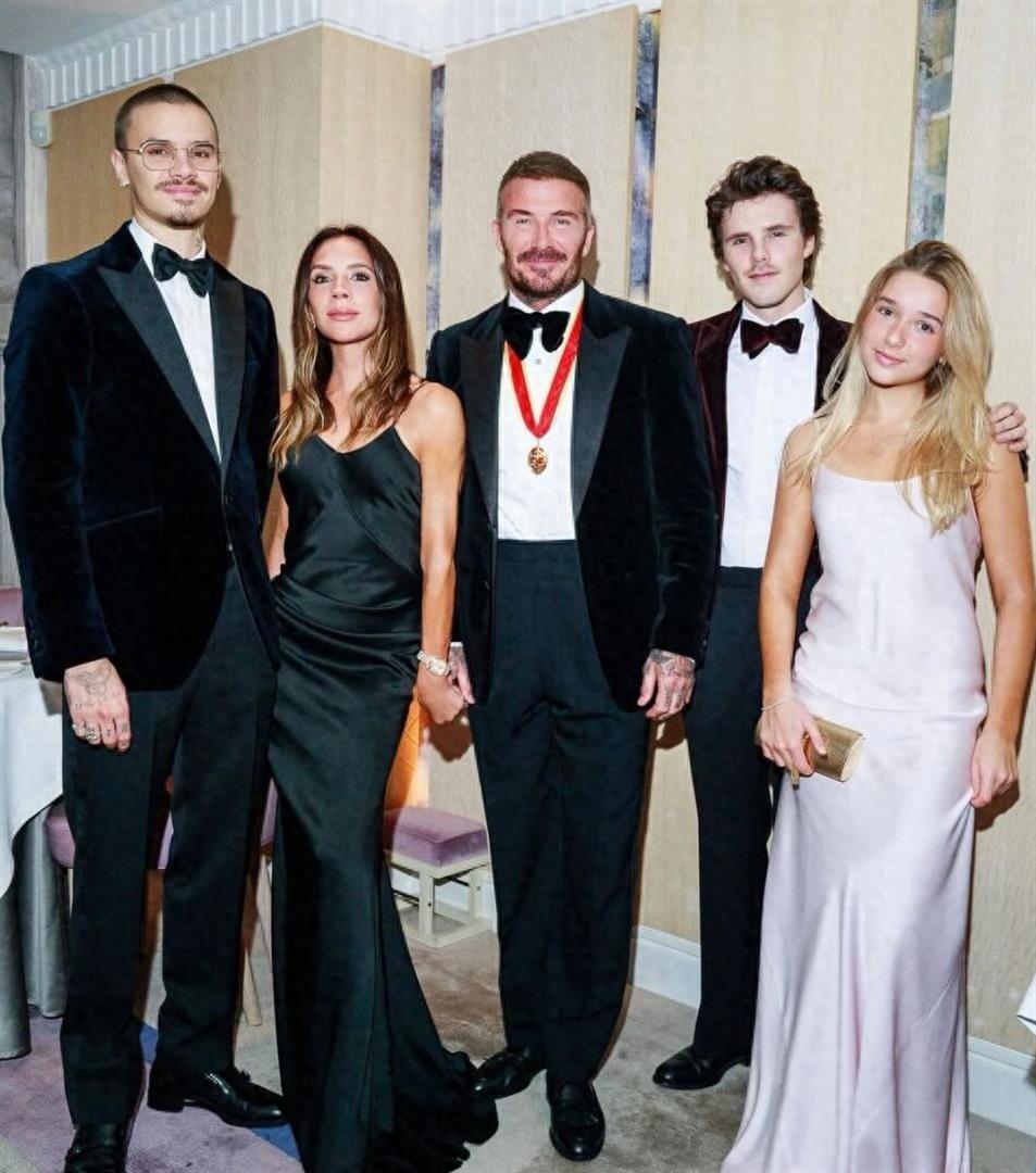 2026年1月,巴黎。 维多利亚·贝克汉姆穿上了一套利落的黑色高领长裙,从法国文化部长手里接过那枚艺术与文学骑士勋章。 丈夫大卫·贝克汉姆穿着同色西装站在一旁,脸上是标准的自豪笑容。 他们的三个儿子来了两个,罗密欧和克鲁兹,各自带着女友。 当然,还有那个从出生就被抱在怀里的女儿,哈珀·赛文·贝克汉姆,大家更爱叫她“小七”。 一家子乌泱泱站在一起,镜头咔嚓作响,画面看起来是完美的名人家庭范本。