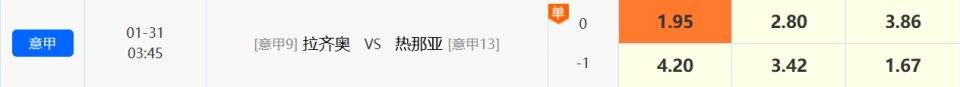 今天前瞻意甲比赛,拉齐奥VS热那亚。