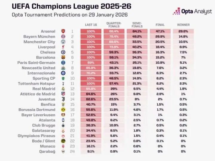 我记得很久之前我就已经提到过,阿森纳和拜仁将成为本赛季欧冠的最大热门。而在这个榜单里最大的冷门,恐怕也是皇马的排位:这是他们最近5年来,首次夺冠系数跌出前十。