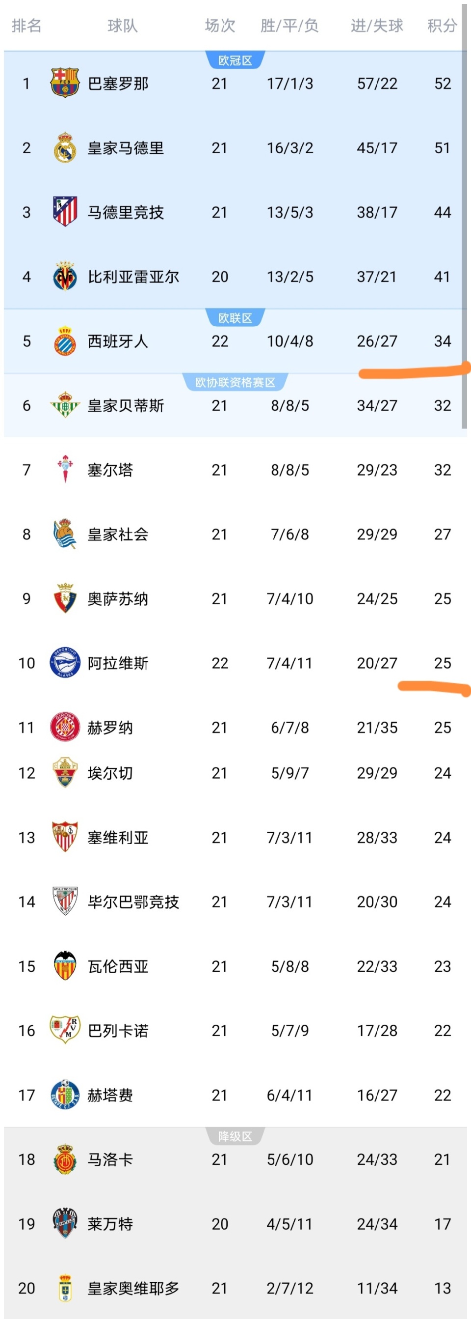今天凌晨,西甲第22轮率先结束一场较量,西班牙人、阿拉维斯出战,这场比赛之后,西甲积分榜发生变化,我们来看看。