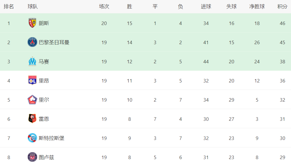 这场比赛让榜首易主。朗斯的战绩是15胜1平4负,拿到了46分,超越了巴黎圣日耳曼登上了榜首位置。朗斯的进球数并不算多,比巴黎圣日耳曼和马赛都要少,但防守做得比较出色,总能以微弱的优势赢下比赛,就像这场比赛也就净胜1球。