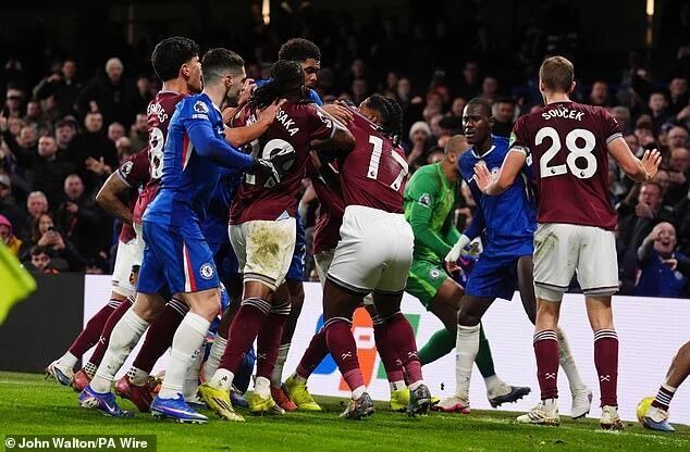 最终,西汉姆以少一人结束比赛,而切尔西则顶住了最后一次角球防守,等来了终场哨。