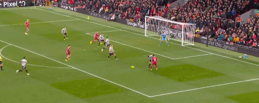 比赛第36分钟,纽卡斯尔快速反击,威洛克从边路给到中路的巴恩斯,巴恩斯吸引了多名防守球员的情况下,继续横敲,戈登拿球后突施冷箭,顶着防守将球打进1-0,利物浦落后了!