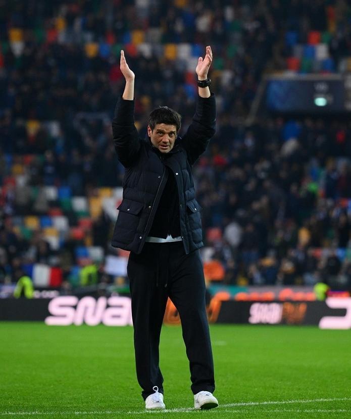 为了能够进一步巩固自己意甲第一的位置,国际米兰此役在客场沿用了球队最熟悉的三后卫体系,首发门将索默,比塞克、阿坎吉和巴斯托尼构筑后防,恩里克、弗拉泰西、泽林斯基、苏契奇和迪马尔科坐镇中场,双箭头则是埃斯波西托搭档劳塔罗马丁内斯。