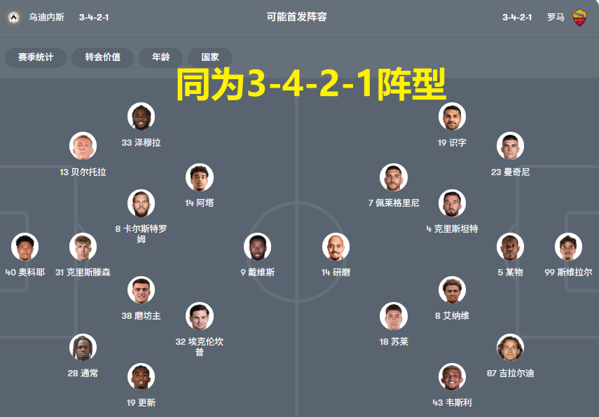 而且,罗马的边翼卫(切利克/安吉利诺或韦斯利)在技术和往返能力上优于乌鸡的替补边路。 在战术镜像对位的情况下,实力更强、经验更老道的一方(罗马)通常会笑到最后。