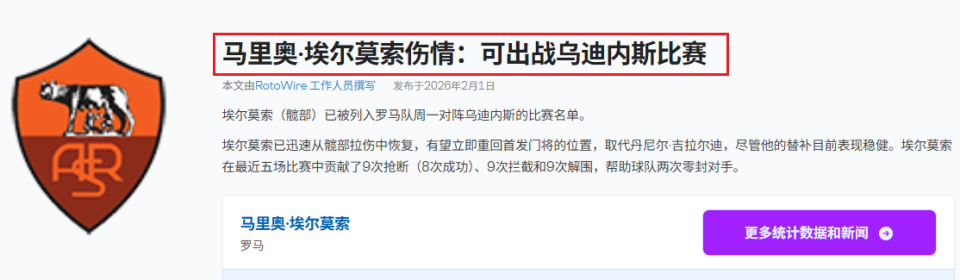 前哨丨意甲乌迪内斯vs罗马前瞻:双翼折断+叛将伤缺,罗马这波趁你病要你命?