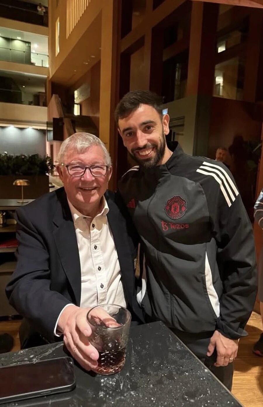 B费刚度过加盟曼联六周年纪念日,他也跟传奇主帅弗爵一起喝酒庆祝。如无意外,今夏这位31岁的葡萄牙中场铁人将留在老特拉福德,因为俱乐部的目标是建设后腰区域,没有足够资金寻找B费的接班人。