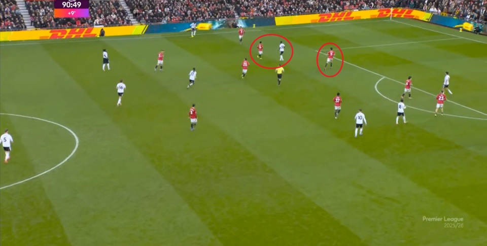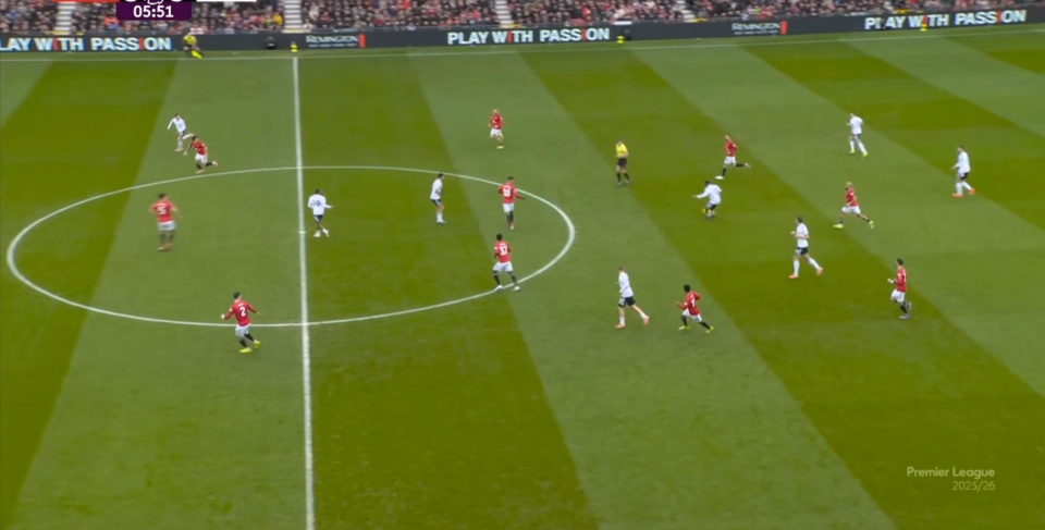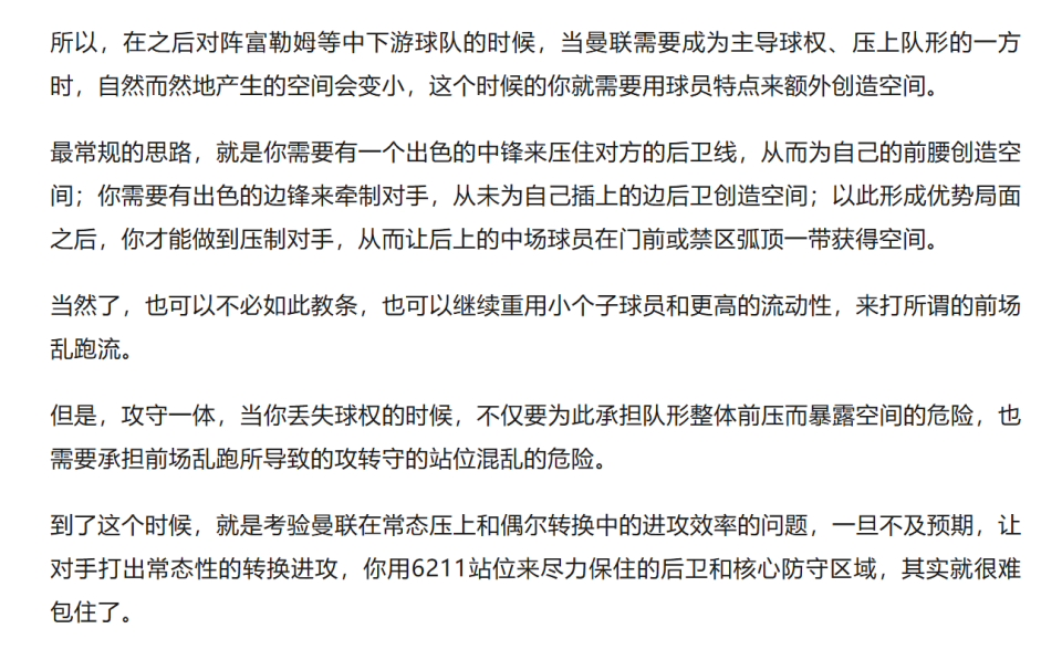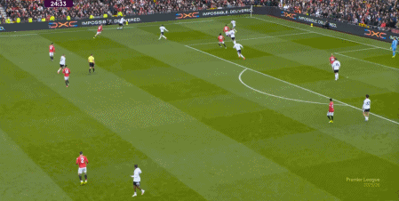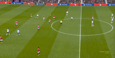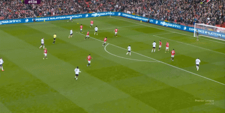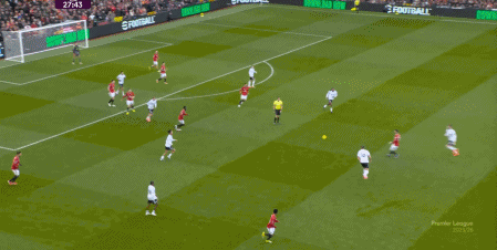 于是,因为右侧确实防不住富勒姆的推进,加上部位点位跟不上,曼联在进球之后,反而逐渐落入下风,被富勒姆掌控住了上半场的后半段局面。