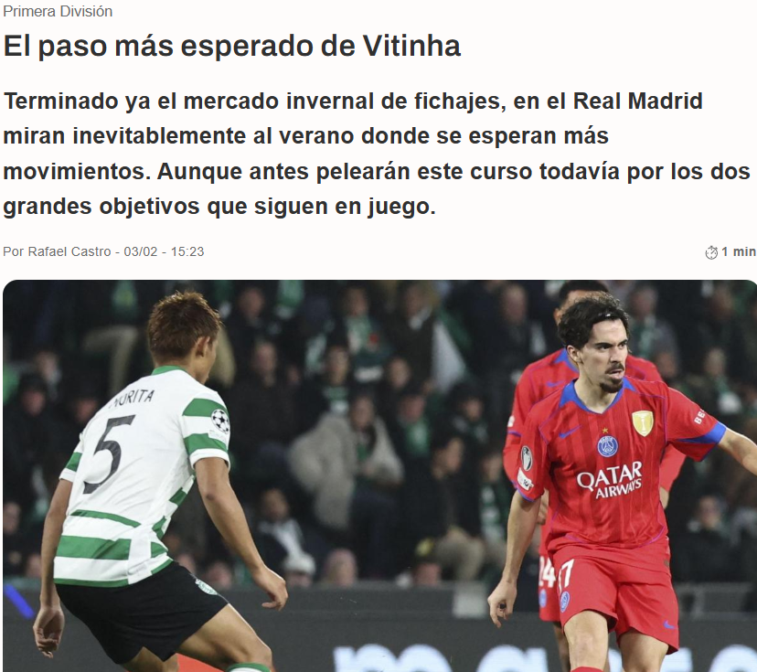 维蒂尼亚与大巴黎还有一份2029年到期的合同,法甲豪门当然不希望将他放走,目前他在德转的身价也高达1.1亿欧元。不过皇马的金字招牌具备足够的吸引力,当初姆巴佩为了加盟皇马宁愿等到自由身0价转会,维蒂尼亚自然也难以抵挡诱惑。皇马计划在中场进行换血,包括巴尔韦德和卡马文加都可能离开,巴尔韦德已经吸引到来自利物浦和切尔西的兴趣,而卡马文加的下一站也可能是英超。