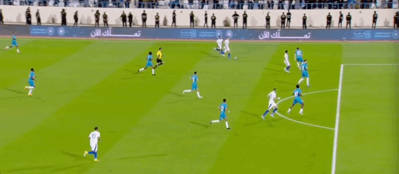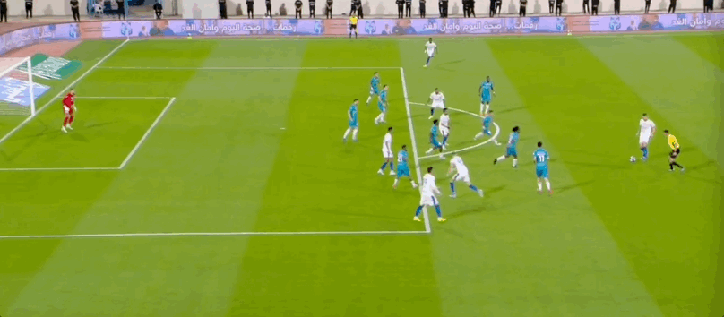 上半场第31分钟,本泽马禁区混战中用脚后跟破门,帮助利雅得新月取得领先。