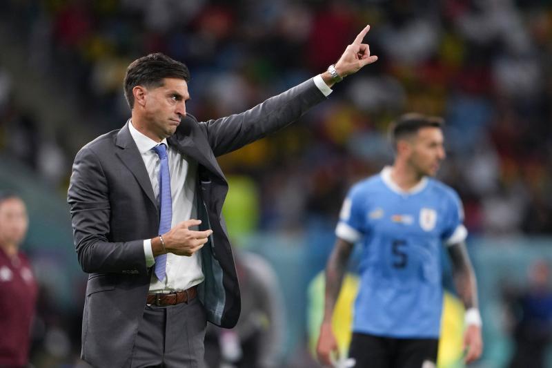 2022年卡塔尔世界杯,乌拉圭队主教练迭戈·阿隆索,竟是当年效力申花的外援。 新华社发