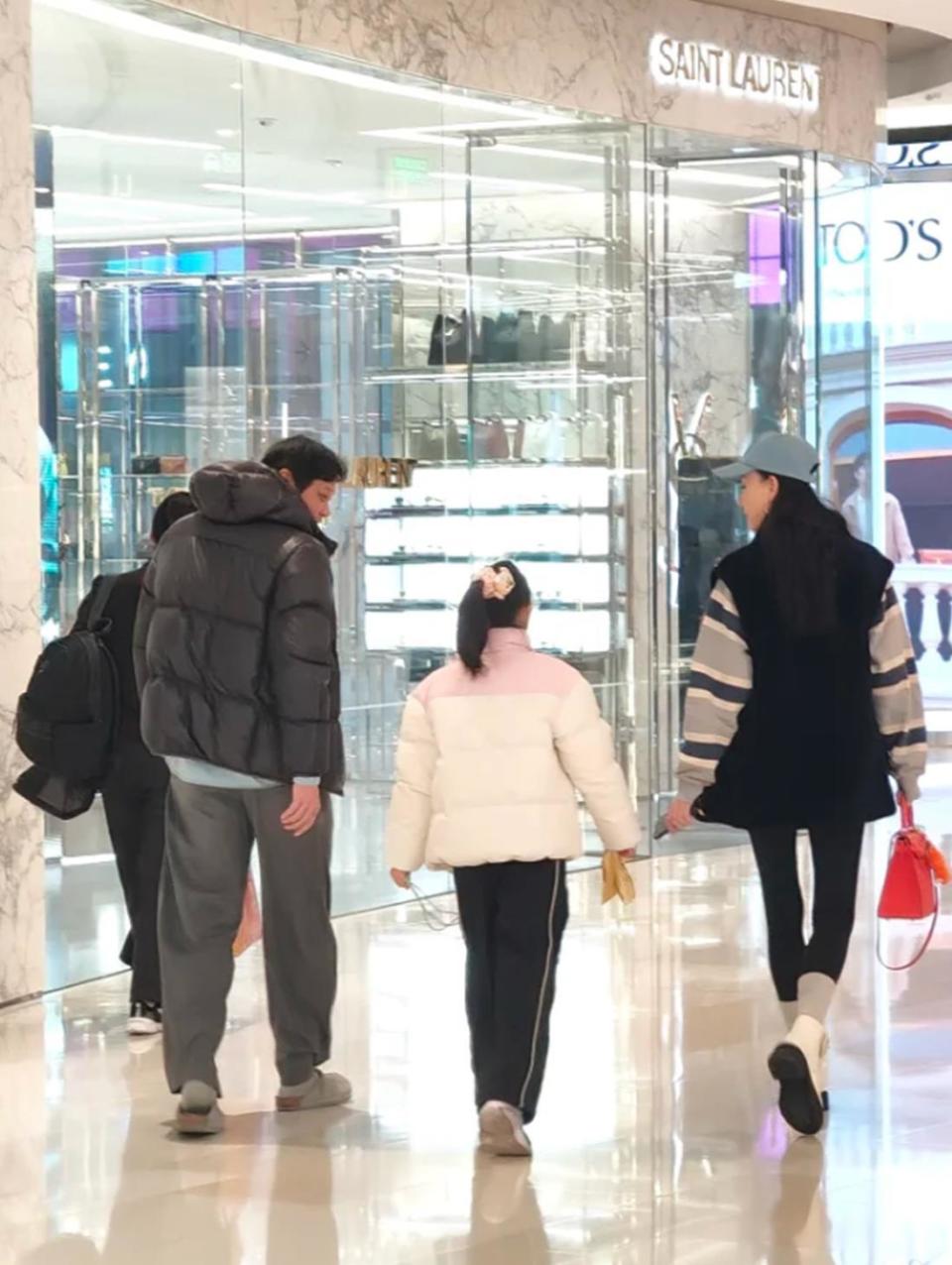56岁范志毅陪妻女逛街,小17岁老婆好瘦,一双腿比9岁女儿还细