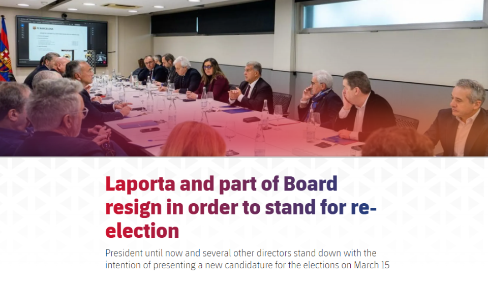 不仅是拉波尔塔,另外还有9名董事也辞职了,因为他们同样准备重新竞选原来的位置。