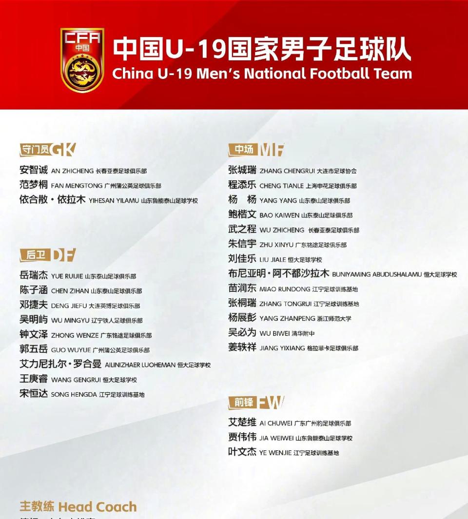 此前公布的U19国字号大名单时,有多名主力未能入选,比如魏祥鑫,作为球队重要攻击手,由于已经签约法甲欧塞尔俱乐部,不会出现在集训大名单内,两回合与乌兹别克斯坦的比赛自然也不会出场。