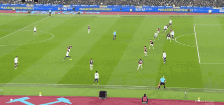 第50分钟,西汉姆联大脚传球,卢克肖防守出现问题,鲍文下底传中,绍切克插上抢点破门。