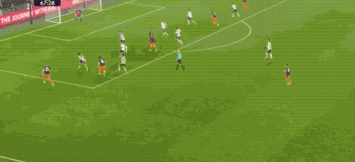 上半场伤停补时第5分钟,纽卡斯尔边路传中,维卡里奥已经做出精彩扑救,佳夫补射,打破僵局。