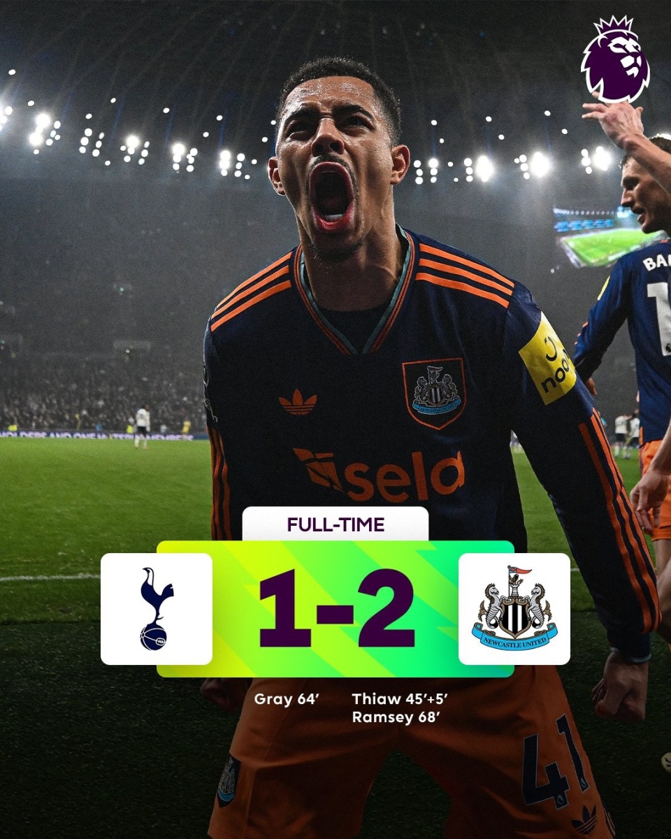 热刺主场1-2负于纽卡斯尔,8轮不胜排名第15。威洛克反击破门被吹罚越位,佳夫打破僵局,格雷扳平比分,拉姆塞抢点再度帮助纽卡领先。