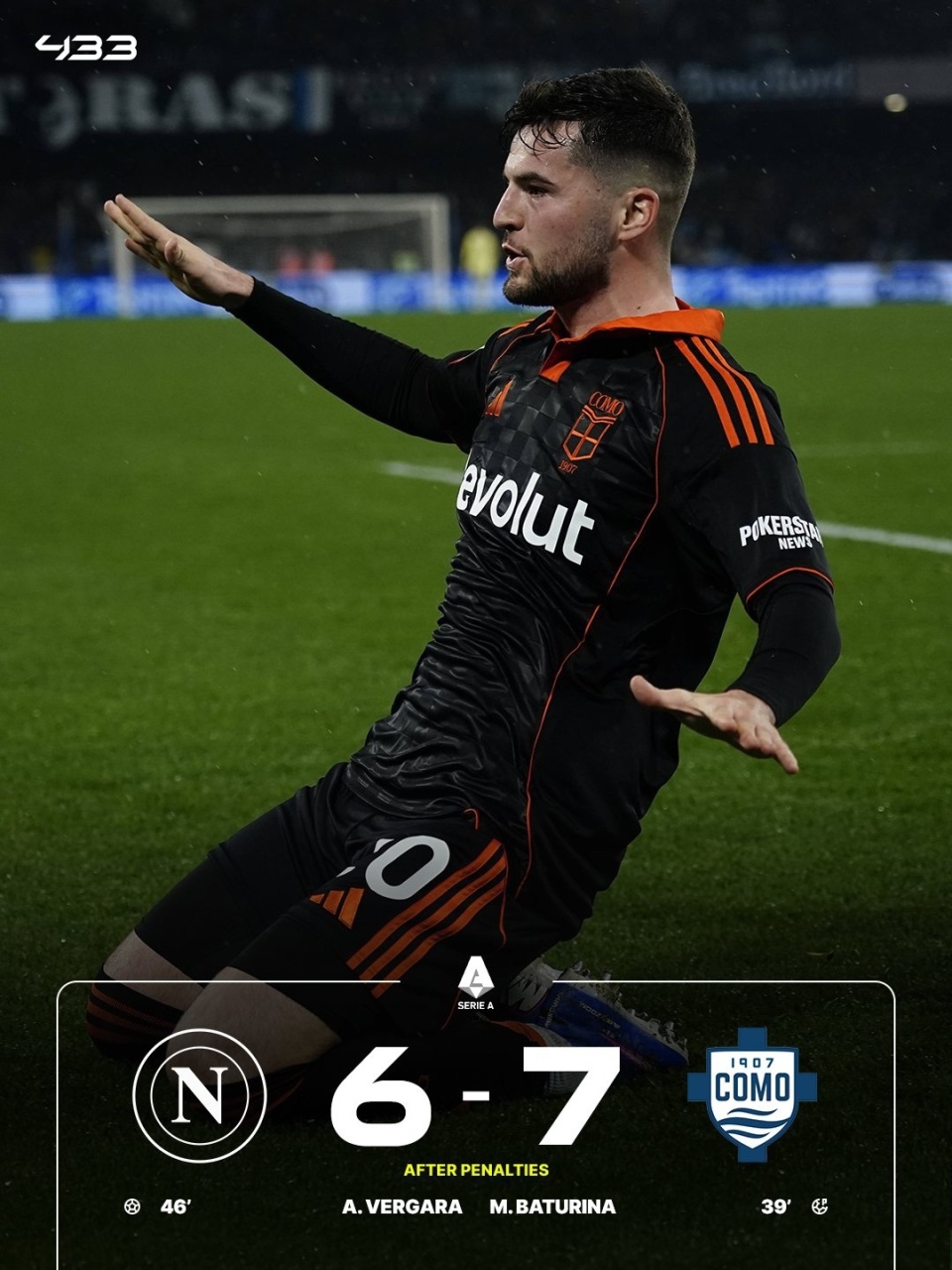 意杯1/4决赛,那不勒斯点球7-8科莫,无缘四强。奥利维拉送点,巴图里纳主罚命中,霍伊伦助攻维尔加拉破门扳平比分。双方进入点球大战,那不勒斯的卢卡库、洛博特卡点球不进,科莫佩罗内点球被扑。