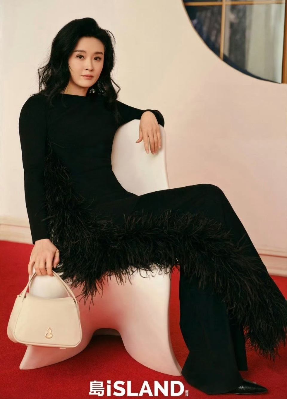 王艳的暗黑造型,是以修身羽毛裙为主元素,既简洁又大气、可以表现出稳稳的气场。
