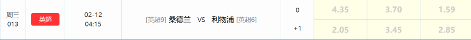 数据库:这场比赛利物浦做客得到了一定支持力度,一方面他们整体硬实力更强,另一方面名气也更大。从后续来看利物浦支持力度比较稳定,但整体来看偏软,毕竟桑德兰只是升班马,这也从侧面说明利物浦作为卫冕冠军让不动,还是状态太疲软。