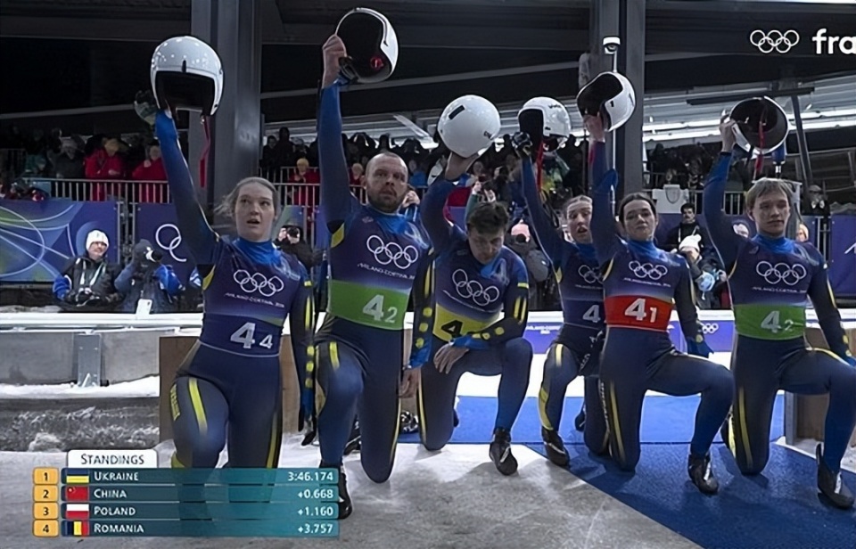 与此同时,乌克兰队的其他队员也是单膝跪地,一起举起头盔,向赫拉斯凯维奇表示支持。乌克兰总统泽连斯基则公开力挺赫拉斯凯维奇,称勇气比金牌更重要。