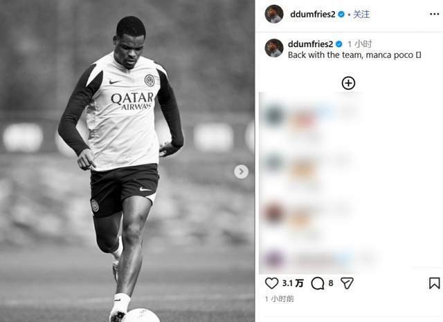 国际米兰边后卫邓弗里斯更新个人社交媒体,晒出自己伤愈复出后的训练照片,并配文:“回归球队,出战”。这是他自2025年11月9日国米2-0击败拉齐奥的意甲联赛后,时隔三个月首次回归合练。这张训练照标志着荷兰飞翼已接近正式复出,为主帅齐沃在赛季后半程提供重要战术选择。
