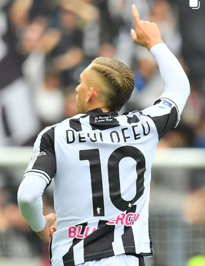 时间往回推到2023年1月。德乌洛费乌当时在意甲的乌迪内斯效力。
