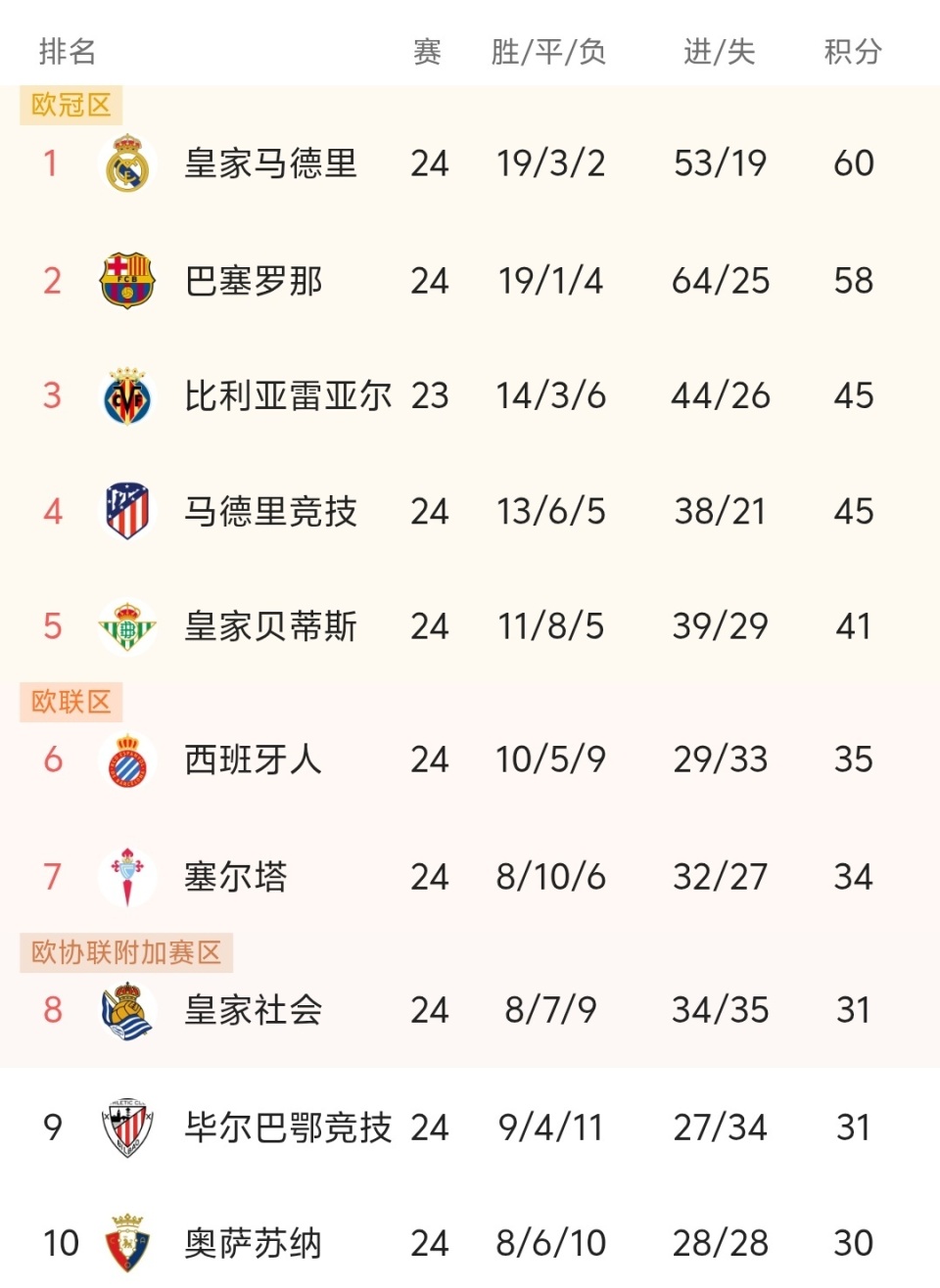 随着巴萨1-2爆冷,惨遭皇马超越,西甲最新积分榜:皇马登顶!