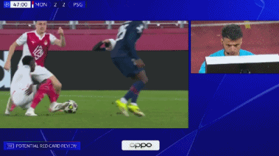 第48分钟,戈洛温踩踏放倒维蒂尼亚,裁判观看VAR将其直接红牌罚下
