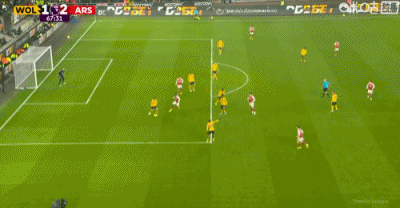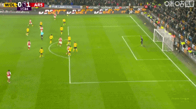 第5分钟,萨卡禁区插上头球破门,阿森纳1-0领先狼队