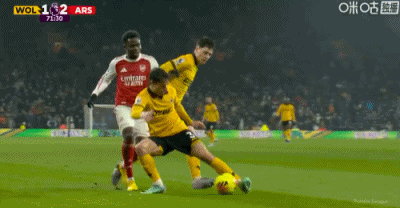 英超:连丢2球+补时送乌龙遭绝平!阿森纳2-2狼队,萨卡破门伤退