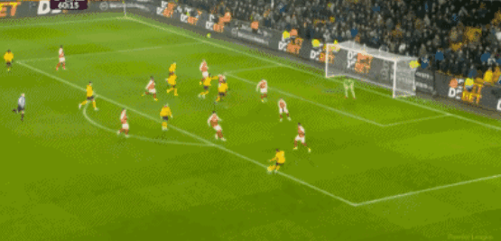 第90+4分钟,加布里埃尔和拉亚配合失误,给了埃多齐补射的机会,卡拉菲奥里虽然奋力在门前解围,但还是把皮球挡入自家球门,最终狼队2-2绝平阿森纳。
