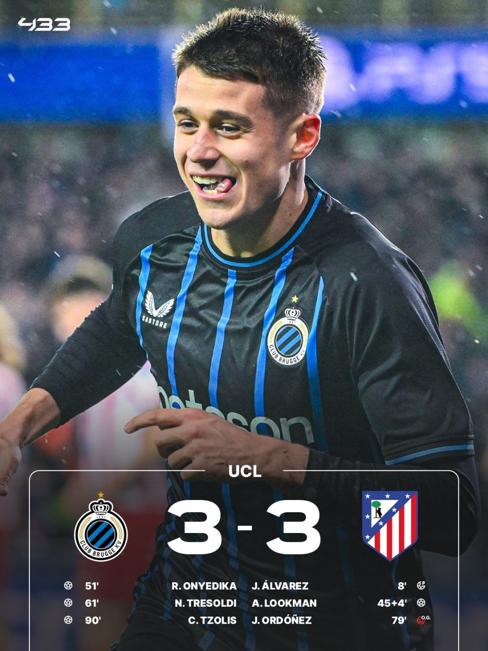 马竞客场3-3战平布鲁日,双方将于2月25日移师利雅得航空大都会球场进行次回合较量。阿尔瓦雷斯点射首开纪录,卢克曼扩大比分,格列兹曼助攻,奥涅迪卡和特雷索尔迪连入两球扳平,马科斯-略伦特造乌龙,佐利斯89分钟绝平。