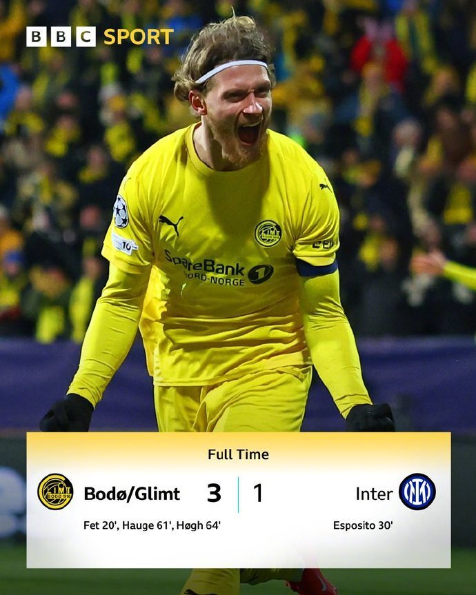 挪威的博德闪耀是本季欧冠的黑马,近4场欧冠比赛客场逼平多特蒙德、力克马竞,主场战胜曼城,这次附加赛首回合又在主场3:1击败国米。